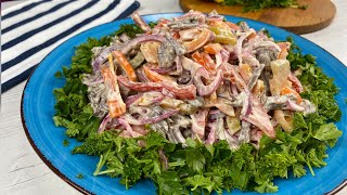 Сытный и очень вкусный #СалатНаНовыйГод 2019 с курицей и грибами....